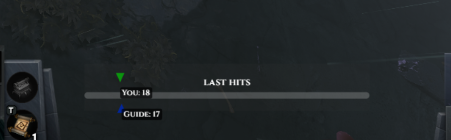 Overlay shows you your last hits, kills, and deaths compared to your selected immortal guide player at the current minute of the game. Never fall behind again.